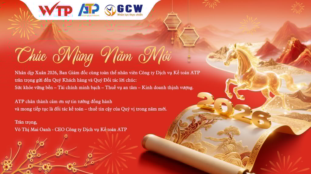 Nhân dịp Xuân 2026, Ban Giám đốc cùng toàn thể nhân viên Công ty Dịch vụ Kế toán ATP trân trọng gửi đến Quý Khách hàng và Quý Đối tác lời chúc: