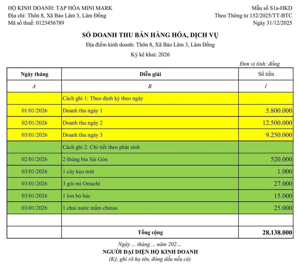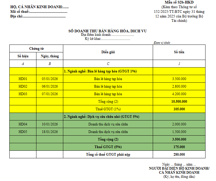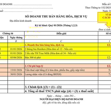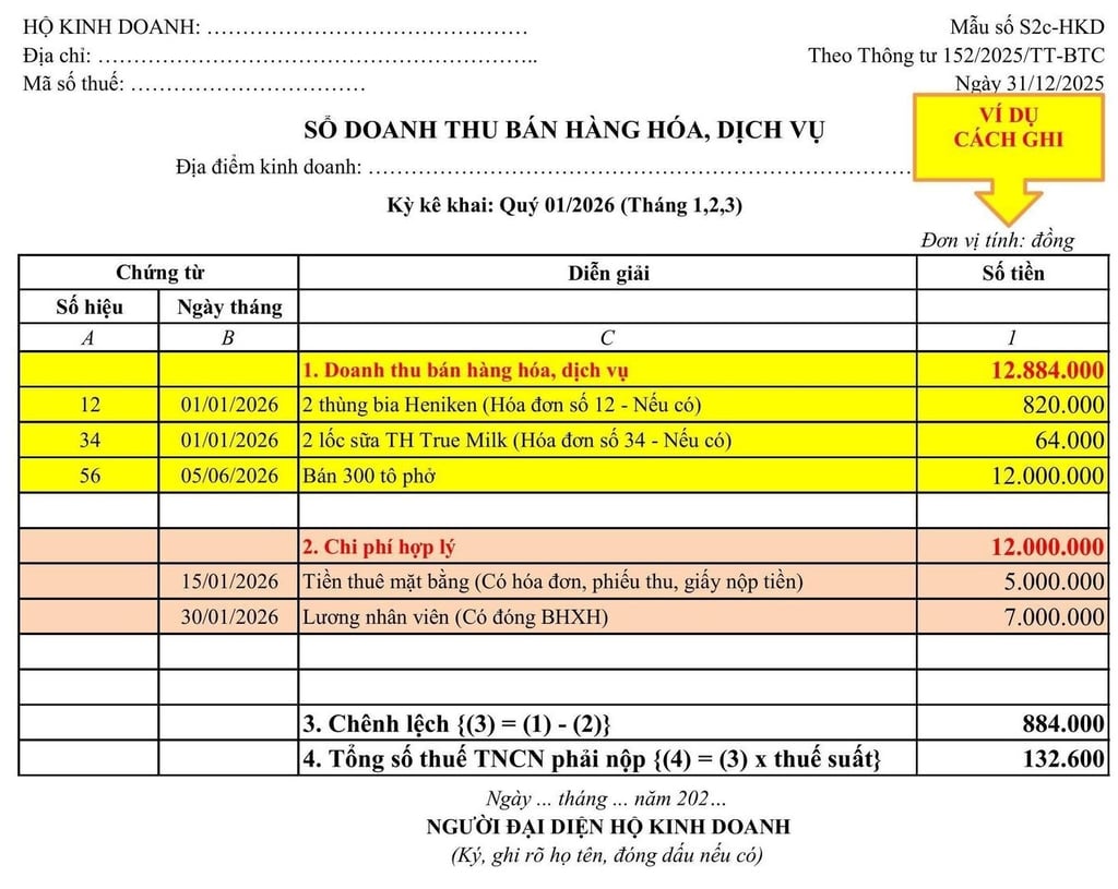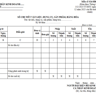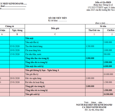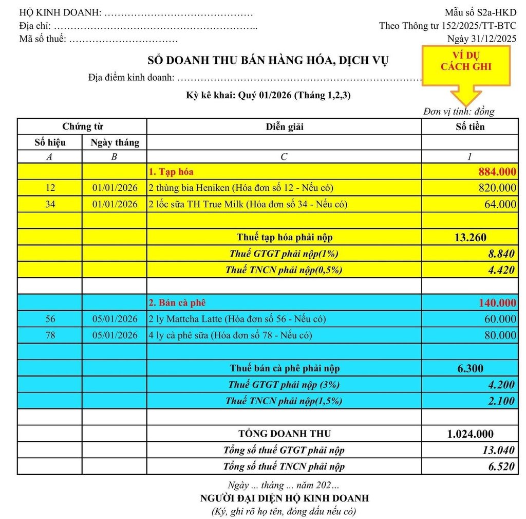 HƯỚNG DẪN GHI SỔ KẾ TOÁN CỦA HỘ KINH DOANH, CÁ NHÂN KINH DOANH MỚI NHẤT TỪ 01/01/2026 THEO THÔNG TƯ 152/2025/TT-BTC