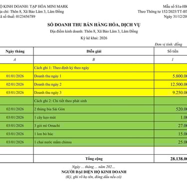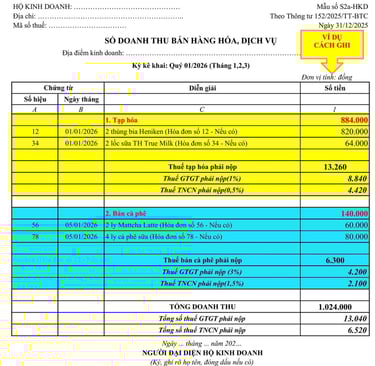 1. Sổ doanh thu bán hàng hóa, dịch vụ (Mẫu số S2b-HKD):